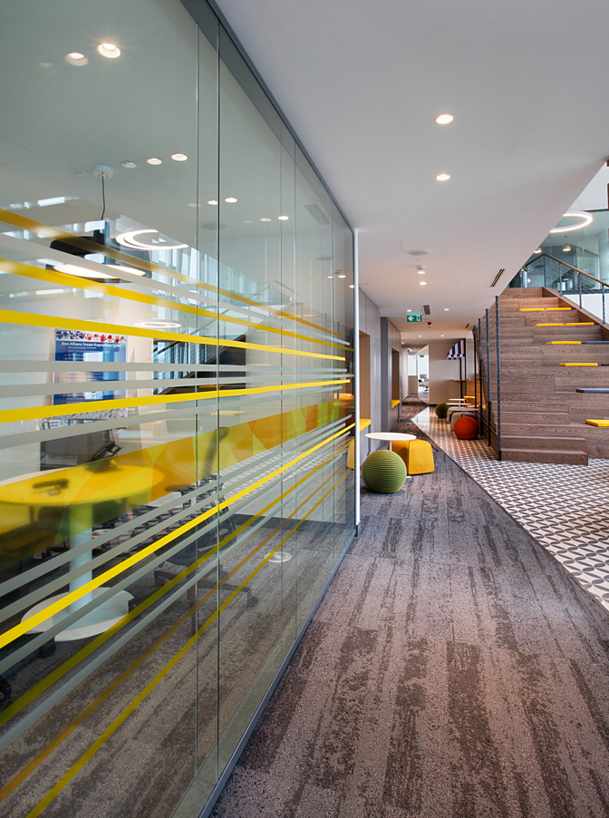 Klassis olarak, projelerinizde çözüm ortağınız olmaktan gurur duyuyoruz. Aukett Swanke tarafından tasarlanan Allianz İzmir Ofisi projesi, yenilikçi tasarım anlayışını ve kullanıcı konforunu ön planda tutan ürünlerimizle, bu vizyonun önemli bir yansıması olarak öne çıkıyor. Projede tercih edilen Interface Net Effect ve Composure karo halı serilerimiz, modüler yapıları ile esnek zemin çözümleri sunarak, ofis içi akışkanlığı artırıyor. Mekanın görsel bütünlüğünü sağlarken, işlevselliği, sürdürülebilirliği ve verimliliği üst seviyelere taşıyor. Bunun yanı sıra, projede kullanılan Steelcase Leap, Think, Reply ve Node ürünleri ise ergonomiyi üstün teknoloji ile buluşturarak, çalışanlara uzun süreli konfor sağlıyor. Hareket özgürlüğünü destekleyen bu tasarımlar, ekiplerin daha verimli, yaratıcı ve iş birliğine açık bir ortamda çalışmalarını mümkün kılıyor.