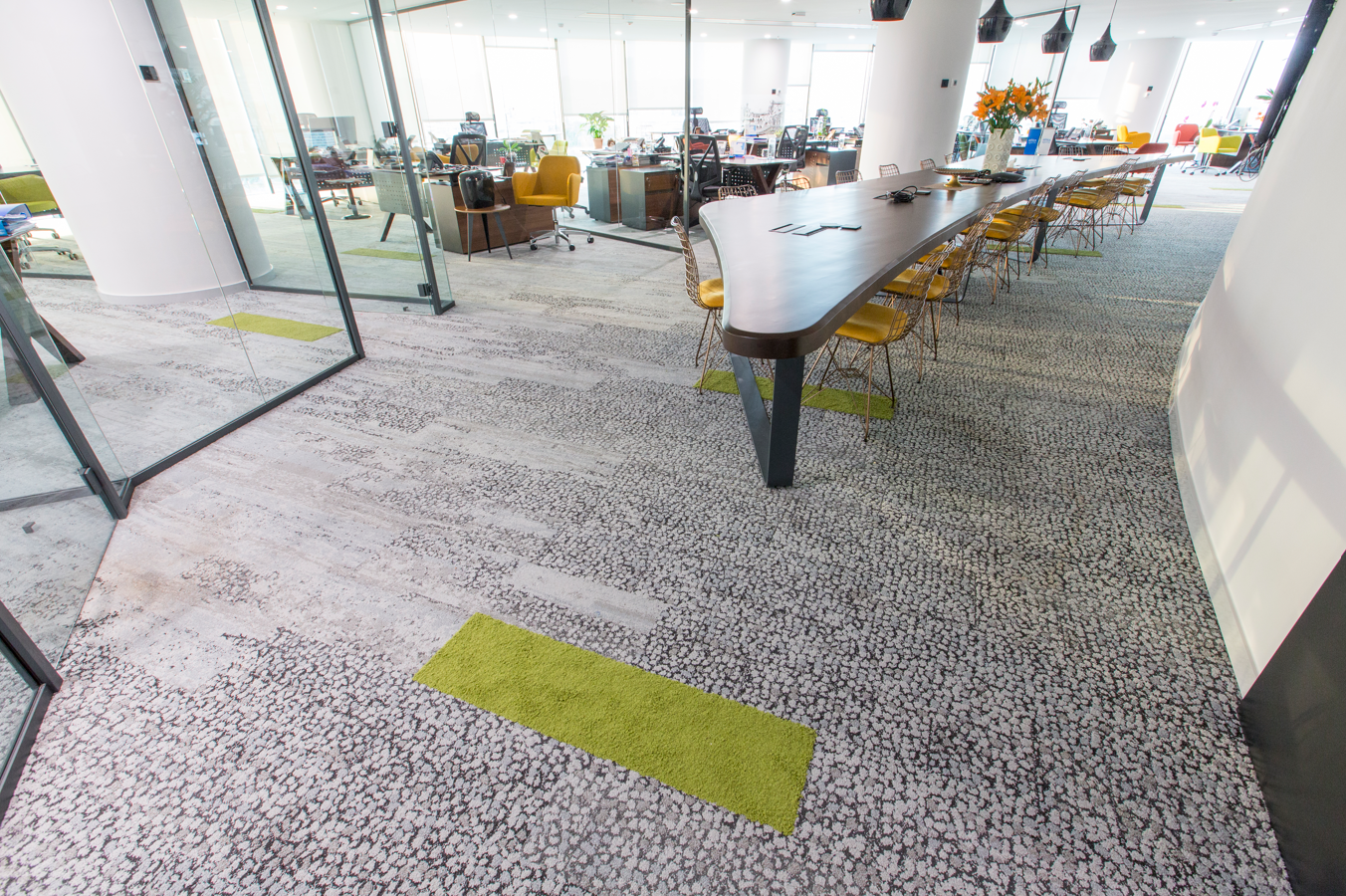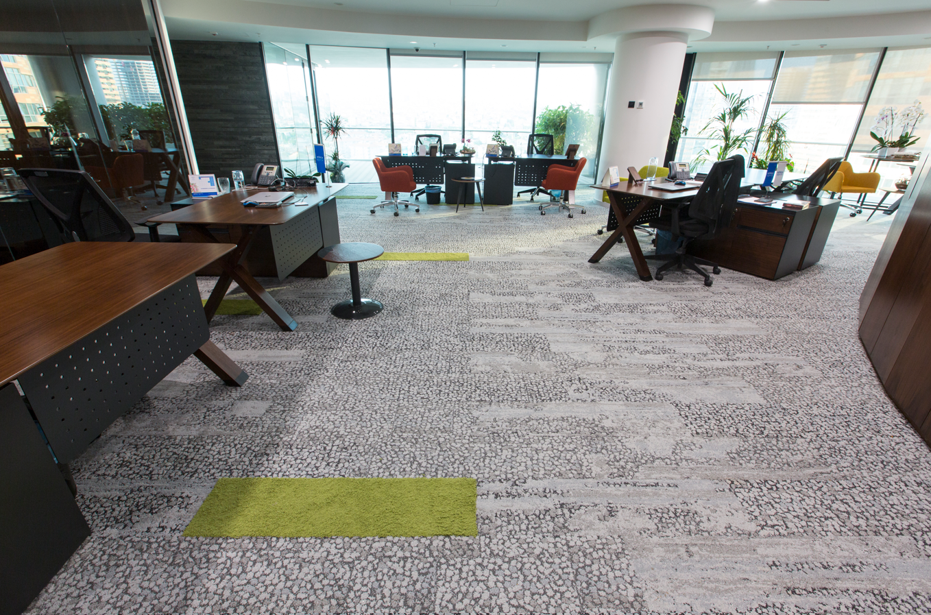 Tarih: 2017 Kategori: Banka/Finans/Sigorta Proje Mimarı: Quark Studio Architects Tags: Ethica SigortainterfaceQuark Studio Architects Ethica Sigorta Türkiye Ofisi 2017 yılında Quark Studio Architects tarafından tasarlanan projede, Interface’in Human Nature karo halı koleksiyonu kullanılarak doğadan ilham alan bir tasarım dili oluşturulmuştur. Ürünler: Interface – Human Nature