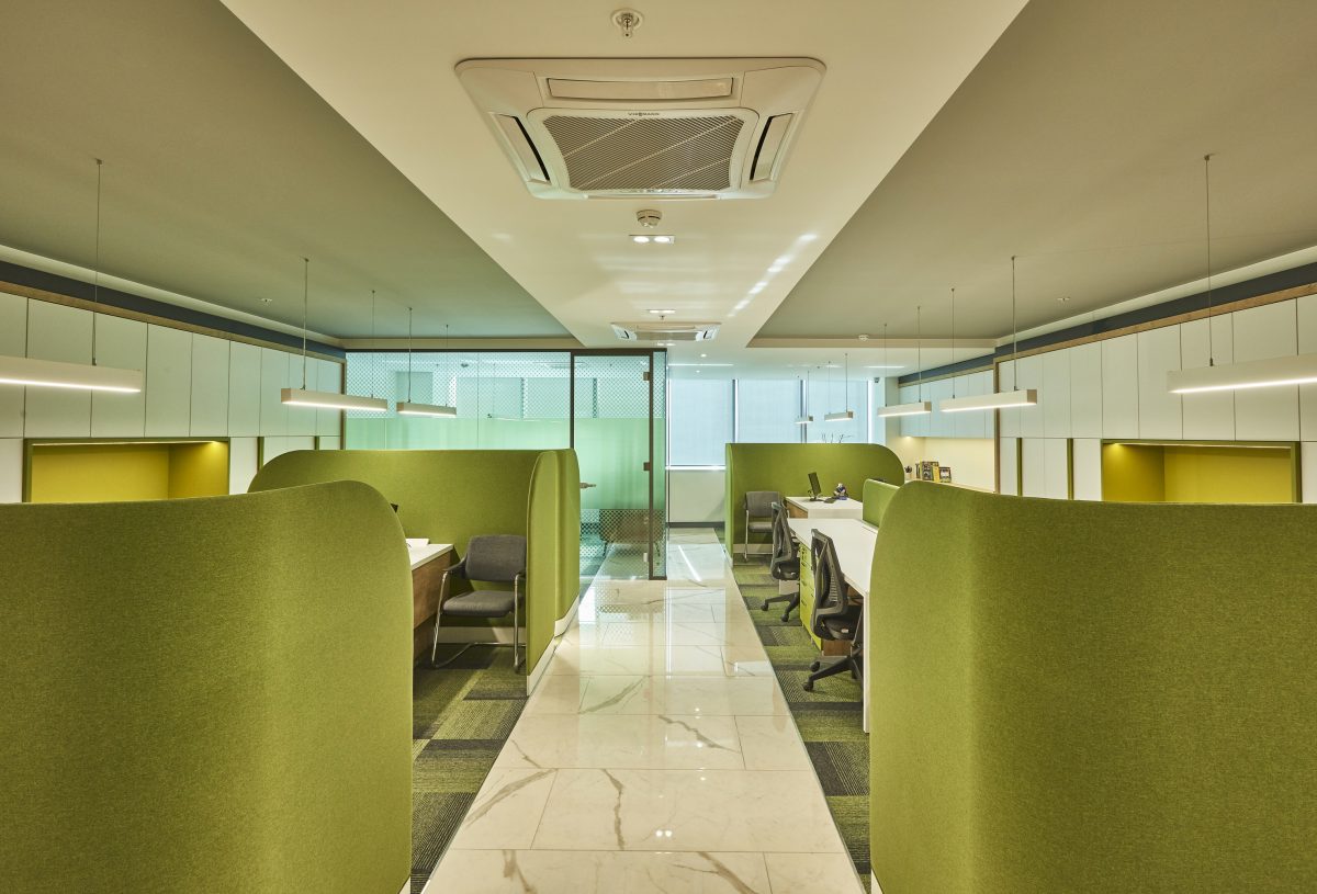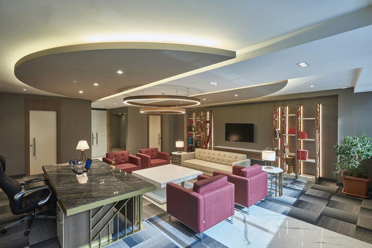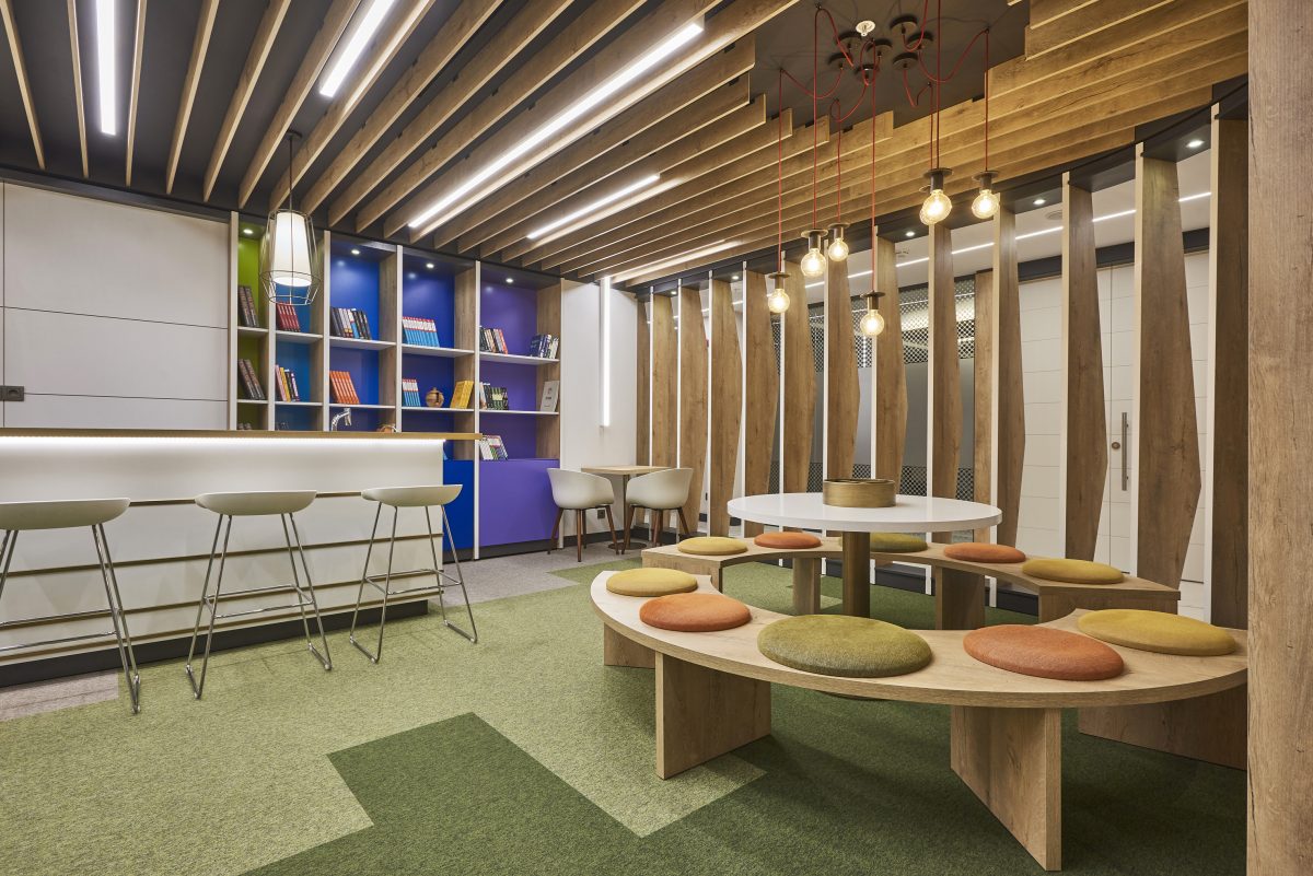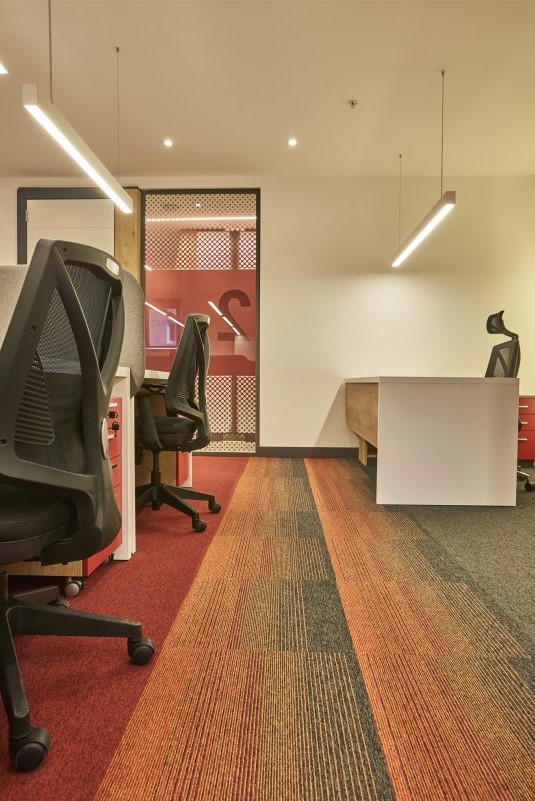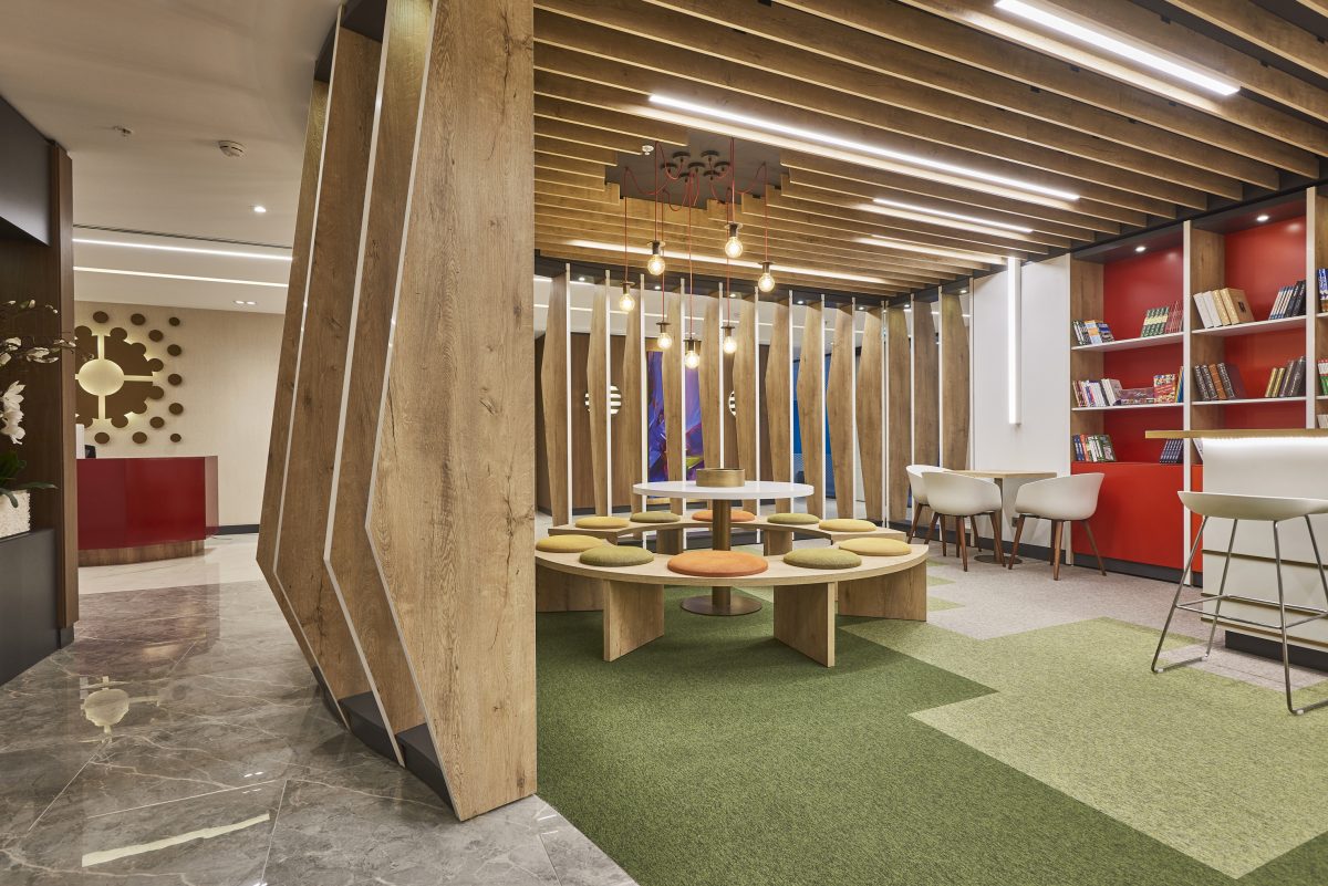 EDDA Mimarlık tarafından sosyal alanının odak noktası olarak belirlenmesiyle planlanan proje; seçilen malzeme, renk ve peyzaj tasarımları ile çalışan motivasyonunu pozitif yönde etkilemek üzere düzenlendi. Kullanılan malzemenin iç mekan konforuna, kalitesine ve dolayısıyla kullanıcısına etkisini analiz eden tasarımcılar IMAK OFSET projesinin zemininde ürün grubumuzda bulunan Interface koleksiyonlarına yer verdi.