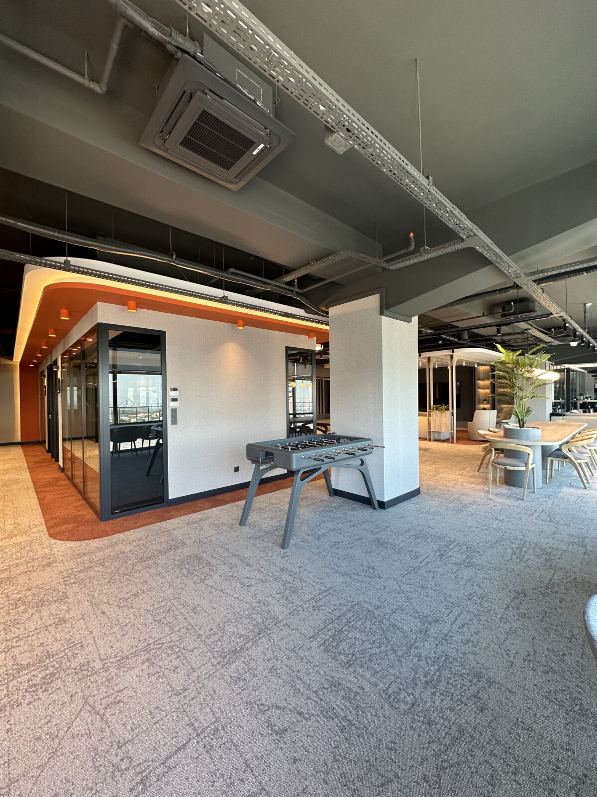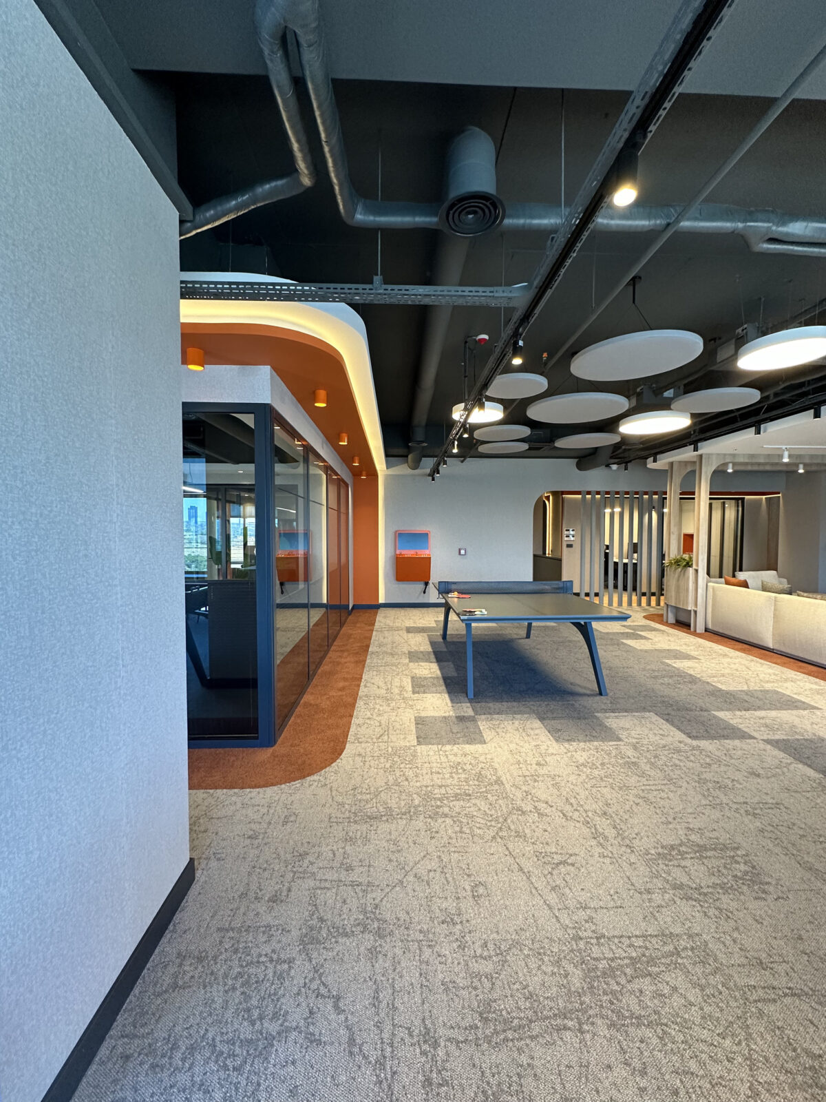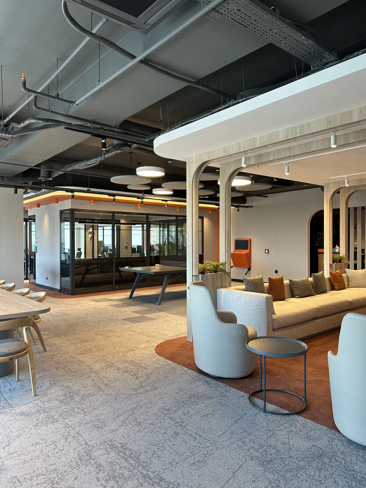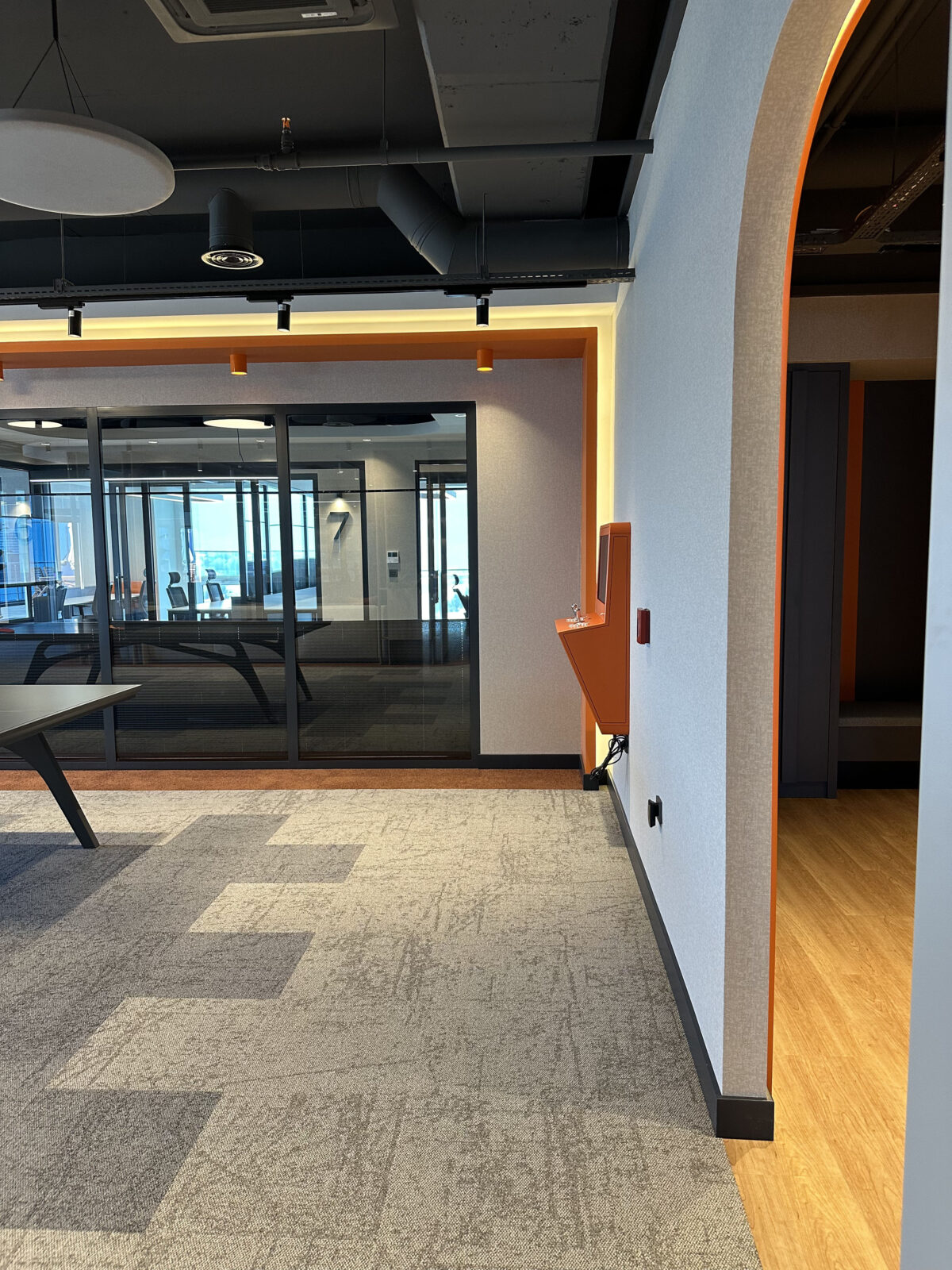 Ruler İç Mimarlık tarafından tasarlanıp uygulanan bu proje, Interface’in Ice Breaker ve Recreation karo halıları ile sıcak ve dinamik bir atmosfer yaratıyor. Ayrıca Level Set Natural Woodgrains LVT koleksiyonu, doğal ahşap görünümüyle mekâna samimi bir dokunuş katarak, kullanıcıların enerjik bir ortamda çalışmasını sağlıyor.