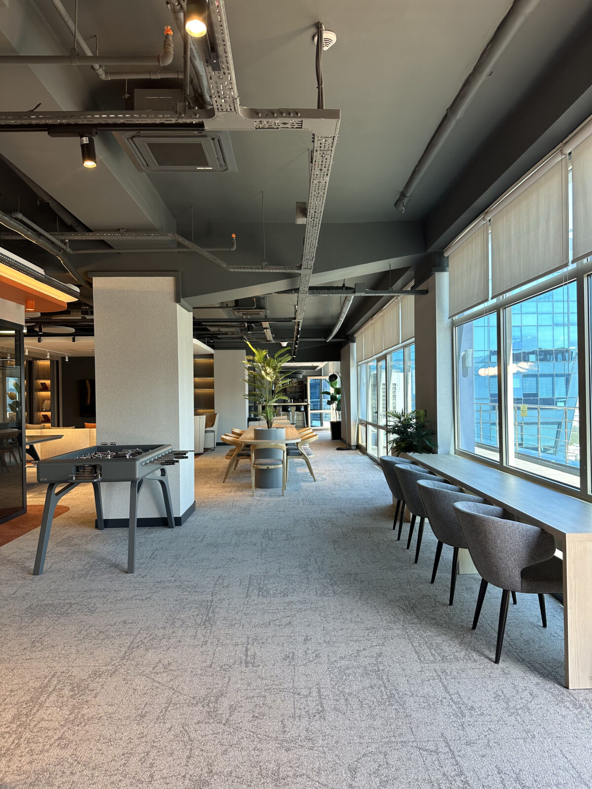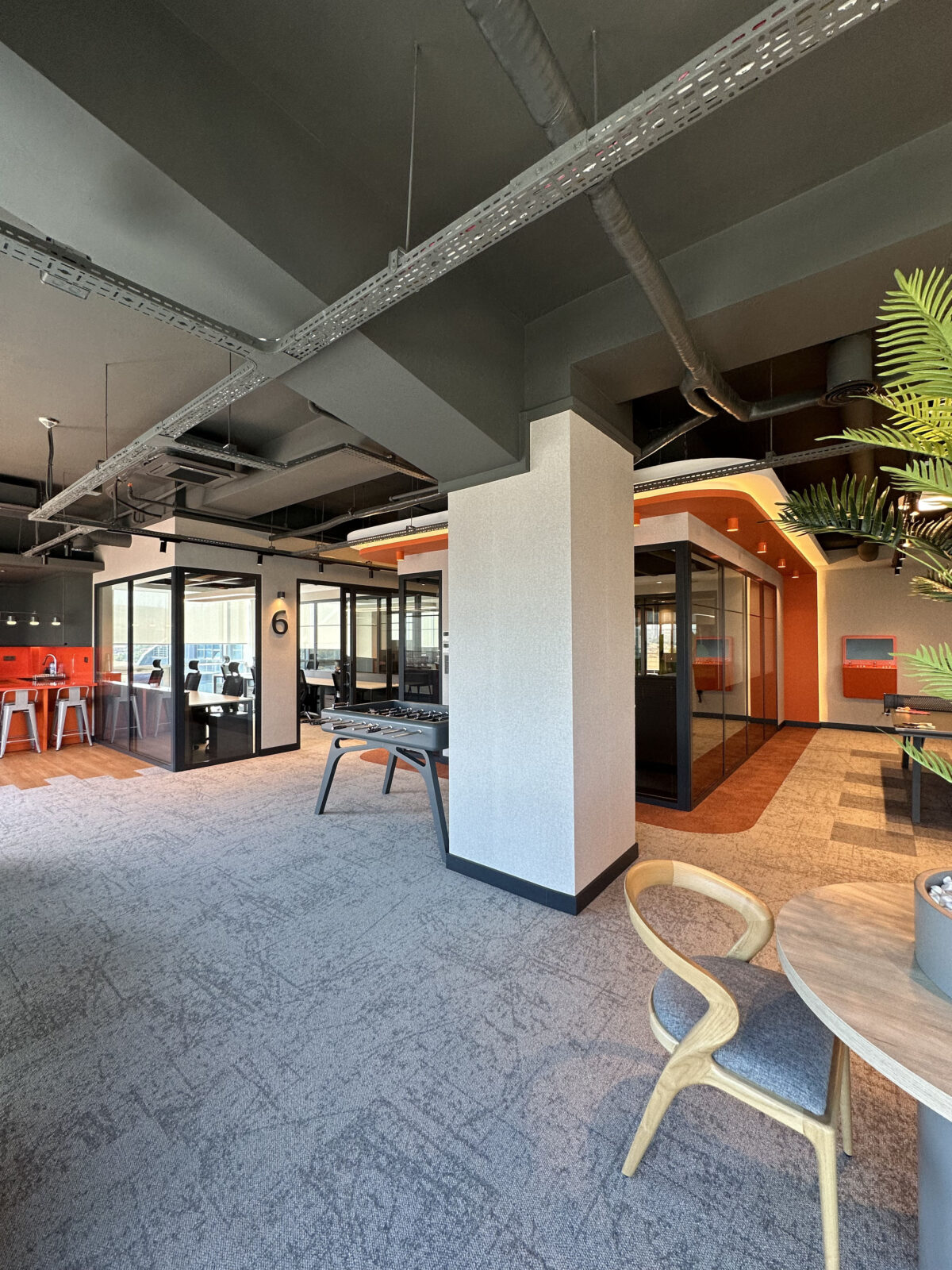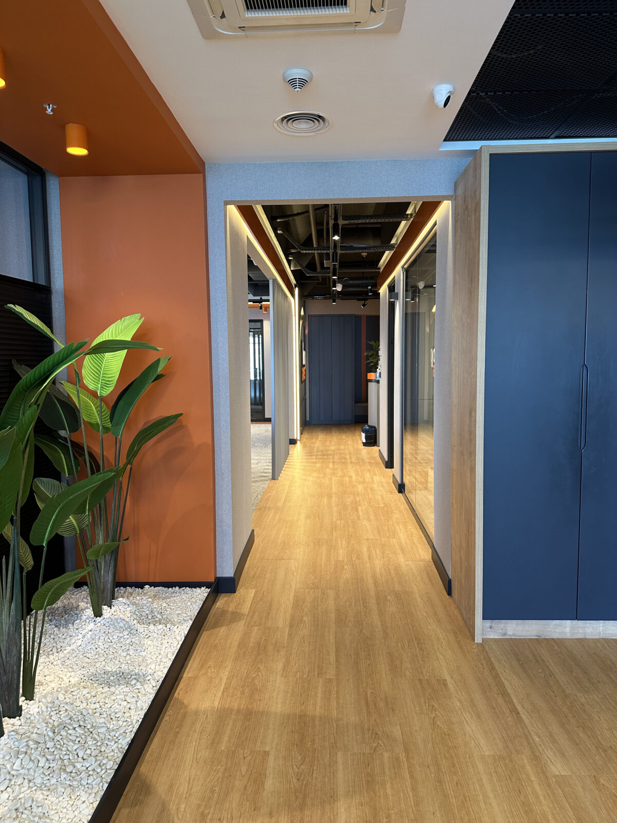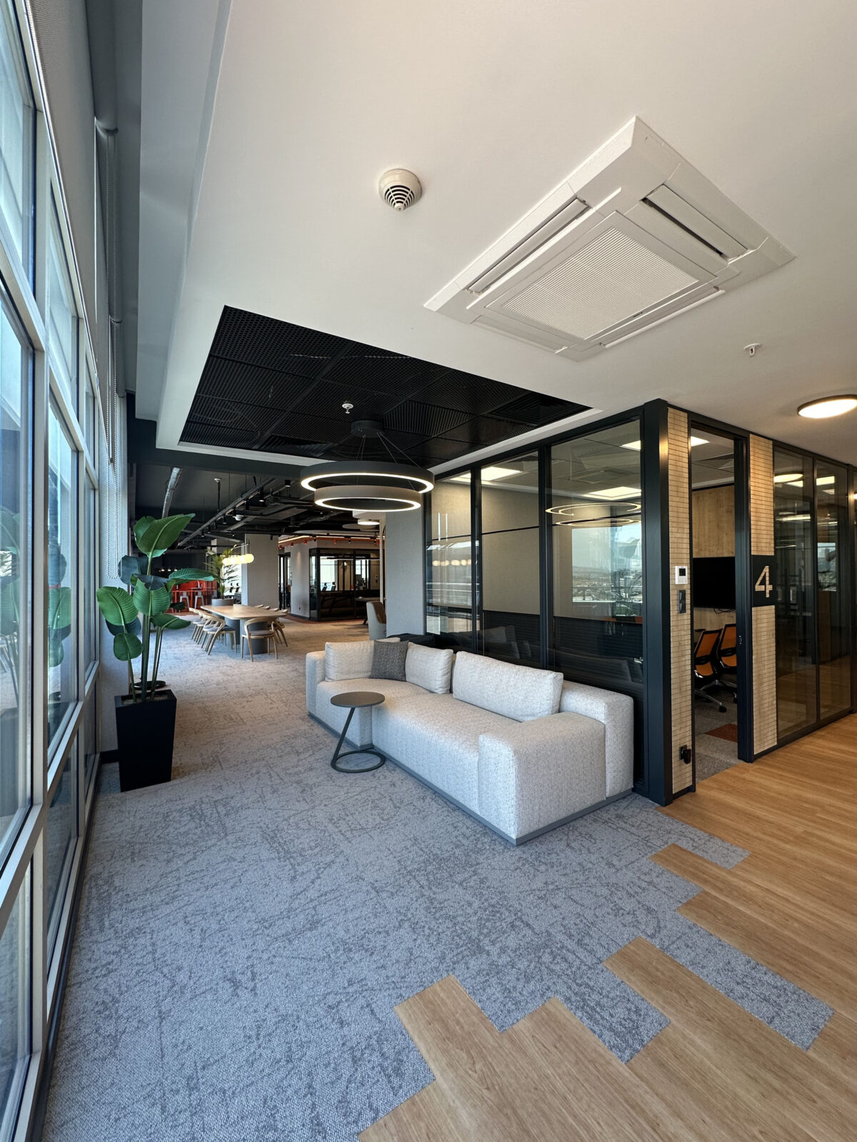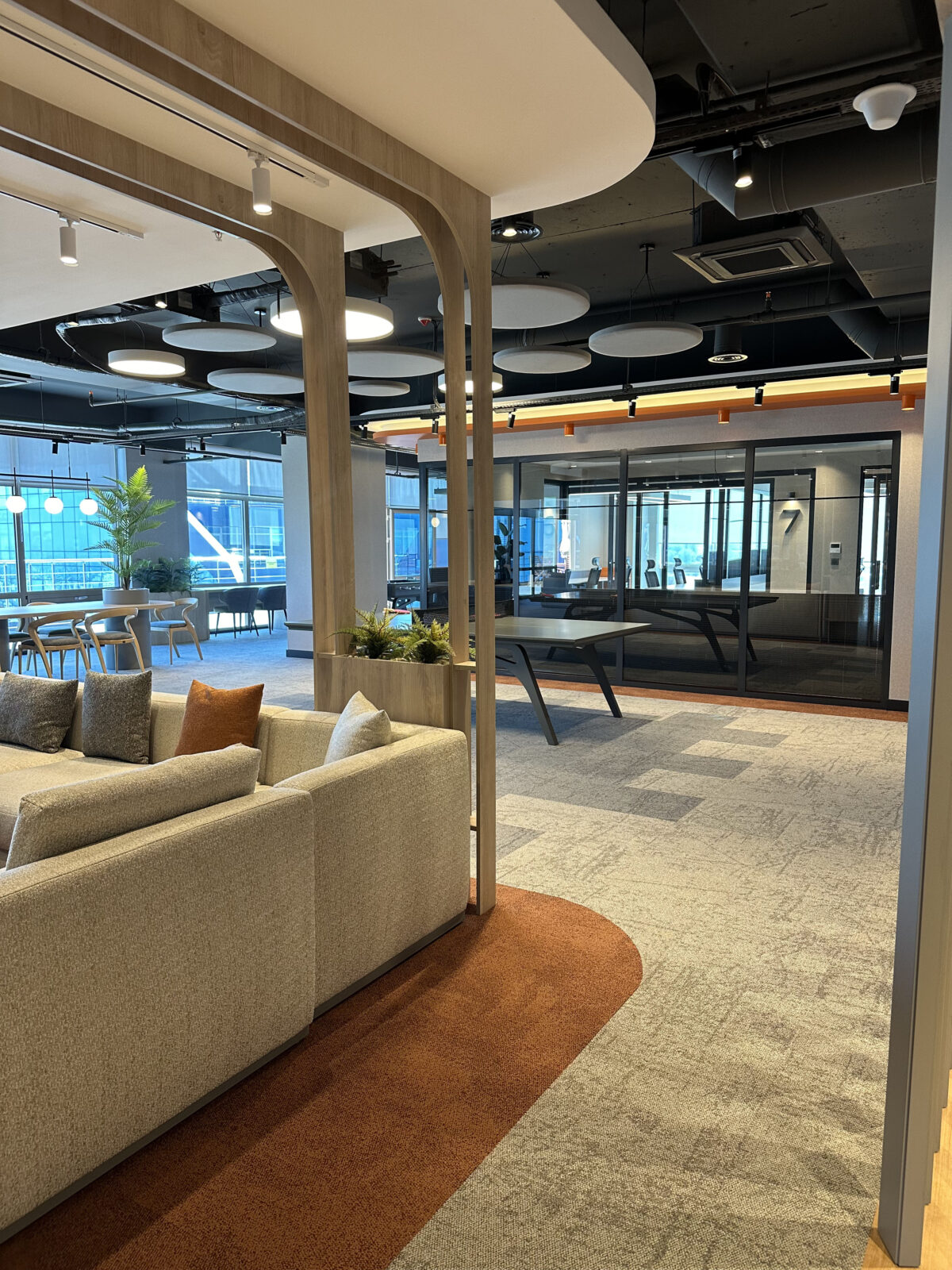 Ruler İç Mimarlık tarafından tasarlanıp uygulanan bu proje, Interface’in Ice Breaker ve Recreation karo halıları ile sıcak ve dinamik bir atmosfer yaratıyor. Ayrıca Level Set Natural Woodgrains LVT koleksiyonu, doğal ahşap görünümüyle mekâna samimi bir dokunuş katarak, kullanıcıların enerjik bir ortamda çalışmasını sağlıyor.