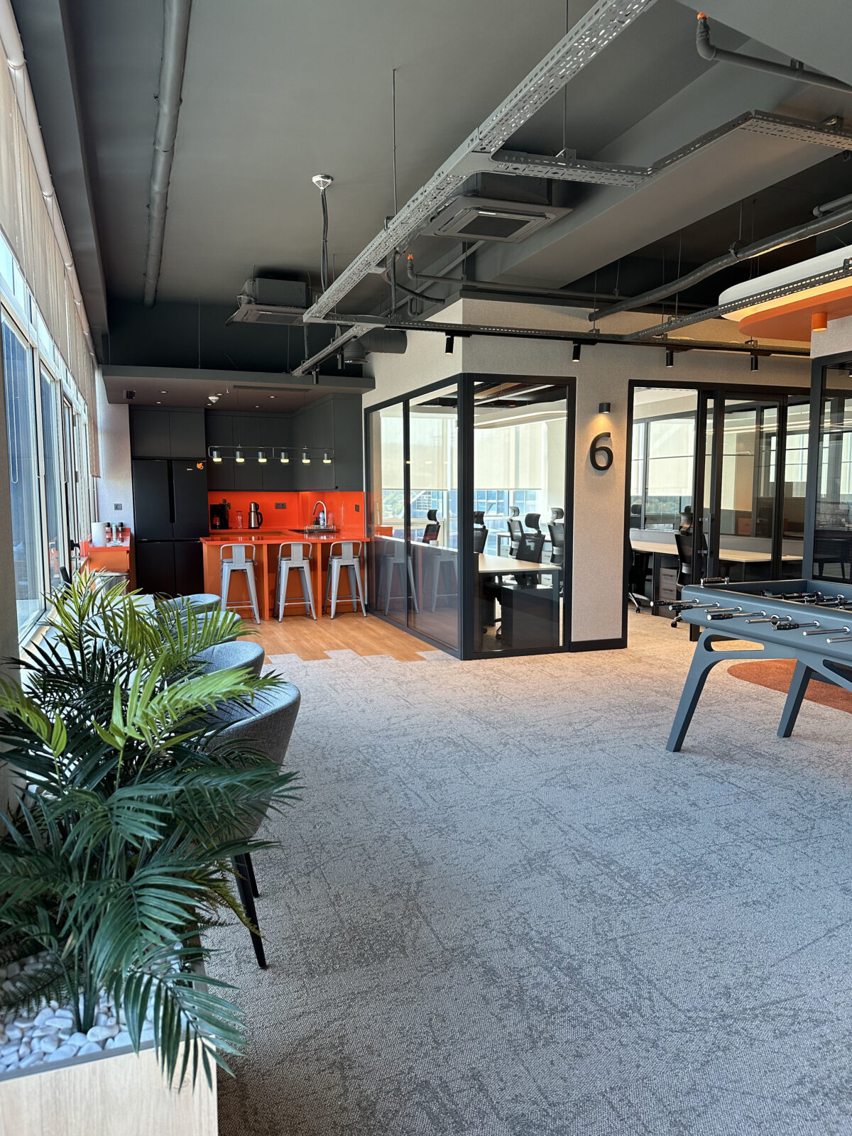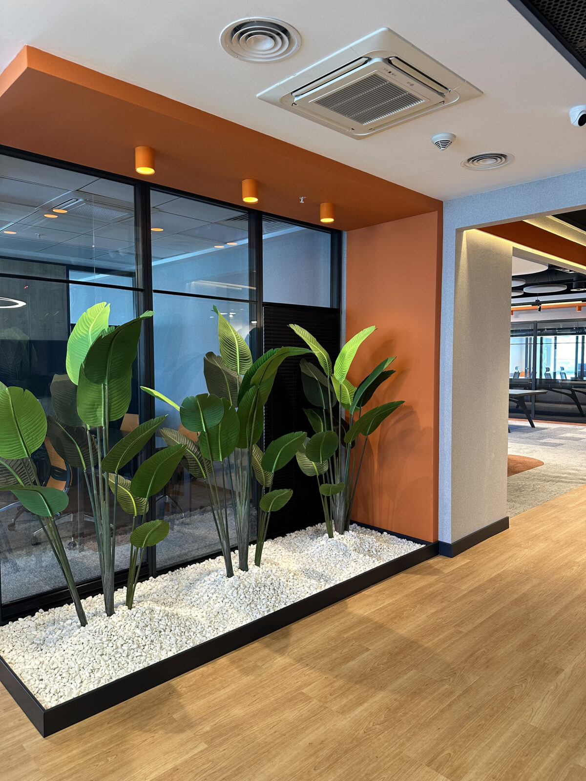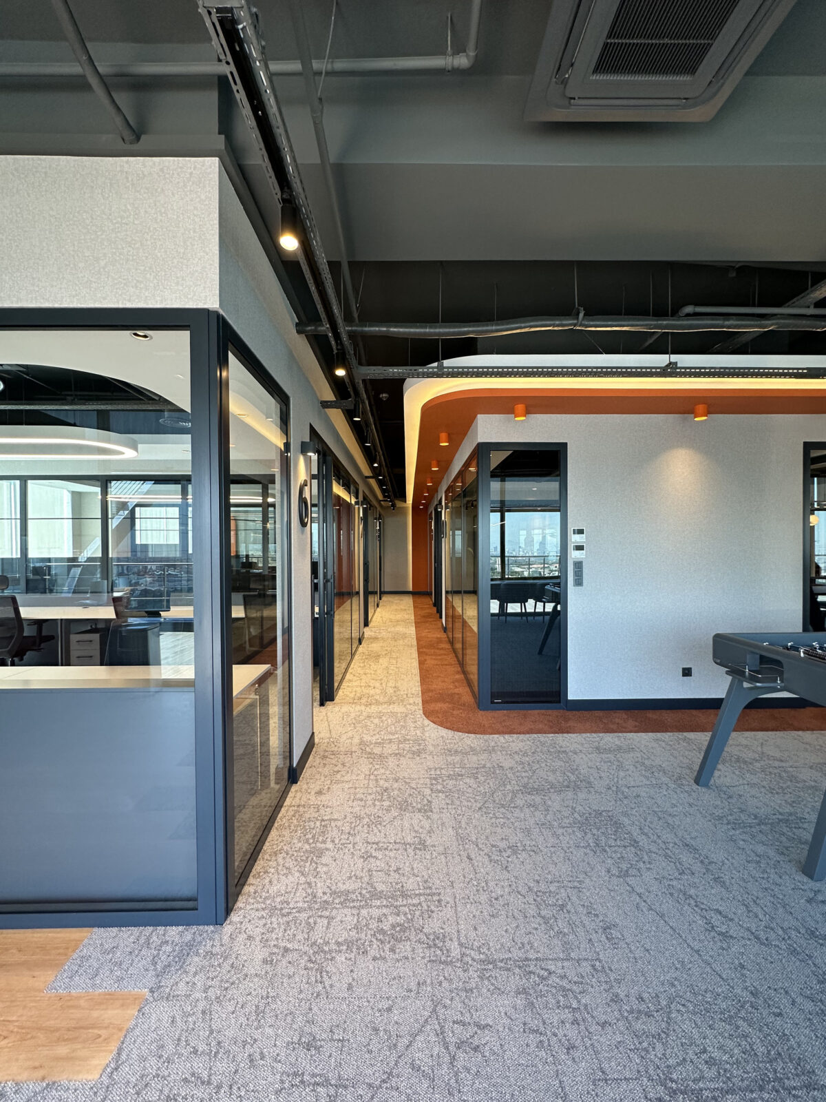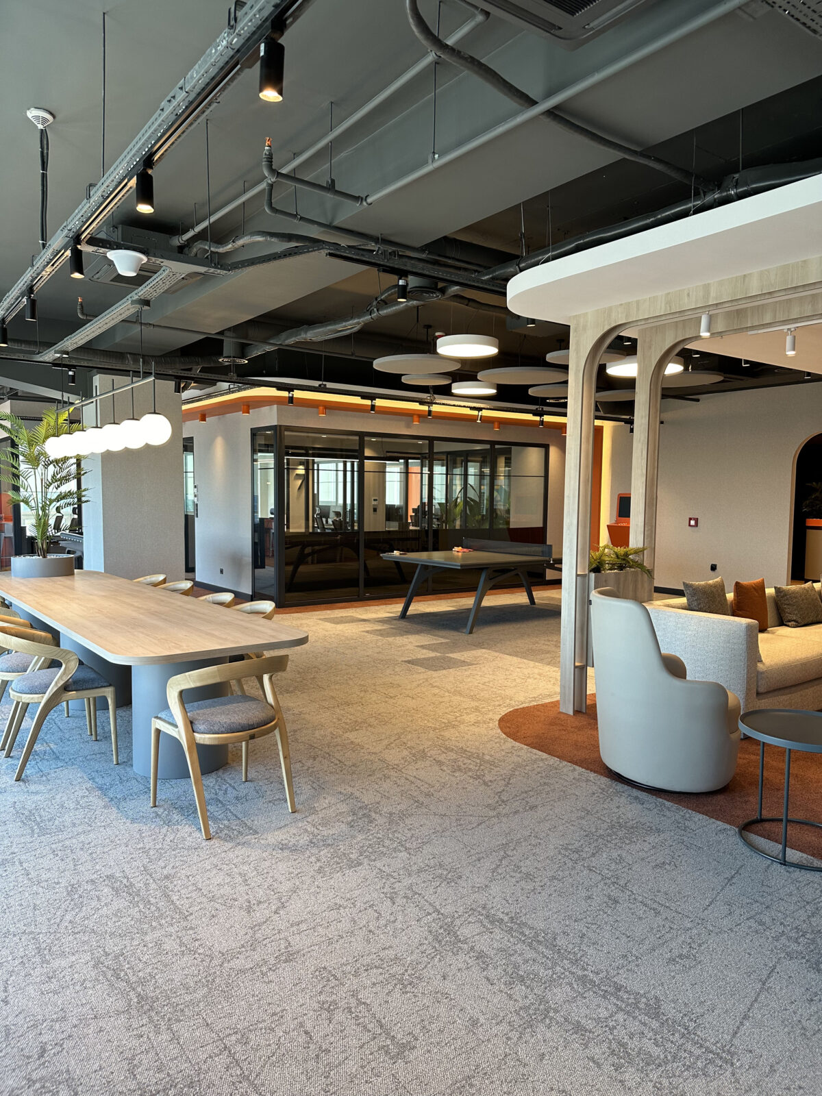 Ruler İç Mimarlık tarafından tasarlanıp uygulanan bu proje, Interface’in Ice Breaker ve Recreation karo halıları ile sıcak ve dinamik bir atmosfer yaratıyor. Ayrıca Level Set Natural Woodgrains LVT koleksiyonu, doğal ahşap görünümüyle mekâna samimi bir dokunuş katarak, kullanıcıların enerjik bir ortamda çalışmasını sağlıyor.